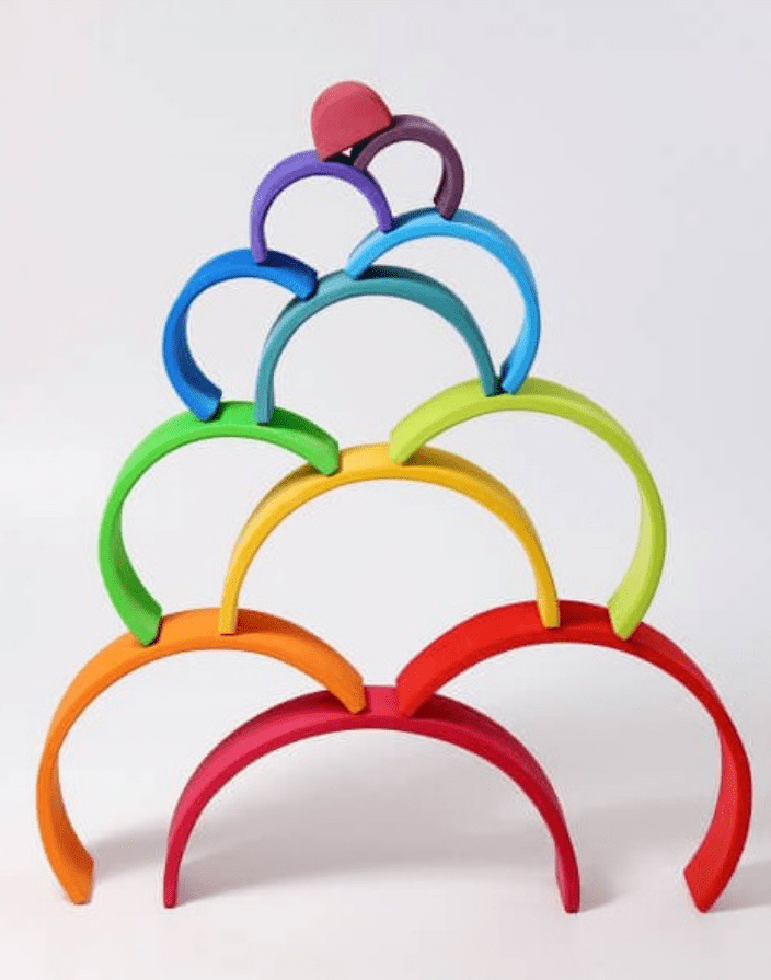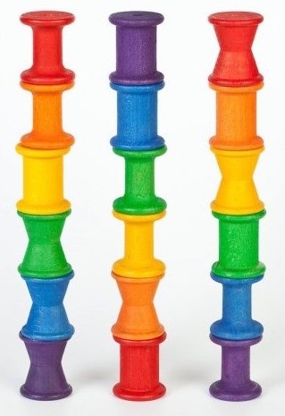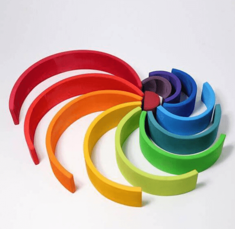 Le modèle aux couleurs de l’arc-en-ciel offre la possibilité d’être assorti avec de nombreux autres éléments de la marque Grimm’s (ex : les demi-cercles) ou Grappat (ex : bobines, cones, jetons) ce qui donne des environnements ludiques très harmonieux en terme de couleurs.
