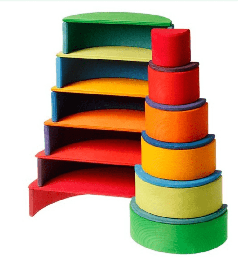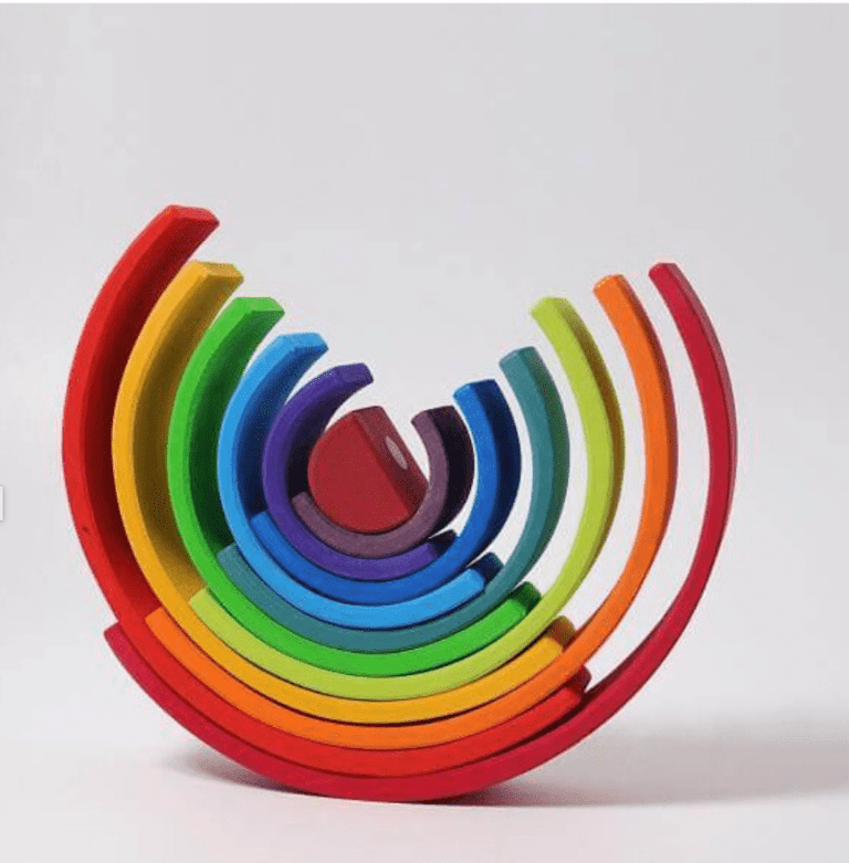 Les réalisations présentées sur ces images peuvent laisser penser que cet article se destine aux enfants relativement âgés. Tout comme l’arc-en-ciel Grimm’s, cet article intéresse les tout-petits qui spontanément cherche toujours à assembler des éléments pour réaliser des constructions. Ils se serviront aussi peut-être au départ des arcs de façon plus dissociée (un berceau pour un petit poupon, un tunnel pour une voiture, etc).
