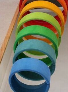 Cet arc-en-ciel made in France permet de réaliser le même type de figures qu’avec le modèle Grimm’s. La différence se situe sur la structure du bois : les arcs présentent une rugosité qui permet de les clipser entre eux. La vidéo ci-dessous est une belle présentation de ce qu’on peut faire avec cet article. Il existe aussi des vidéos complémentaires sur des