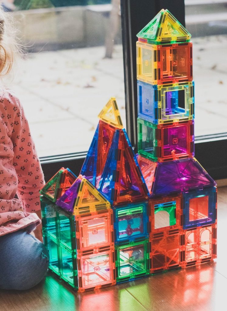 Il s’agit d’un jeu de construction magnétique principalement composé de formes géométriques colorées. Les pièces aimantées s’assemblent très facilement. Même les enfants de 2 ans parviennent à réaliser des constructions en 3 dimensions très élaborées.